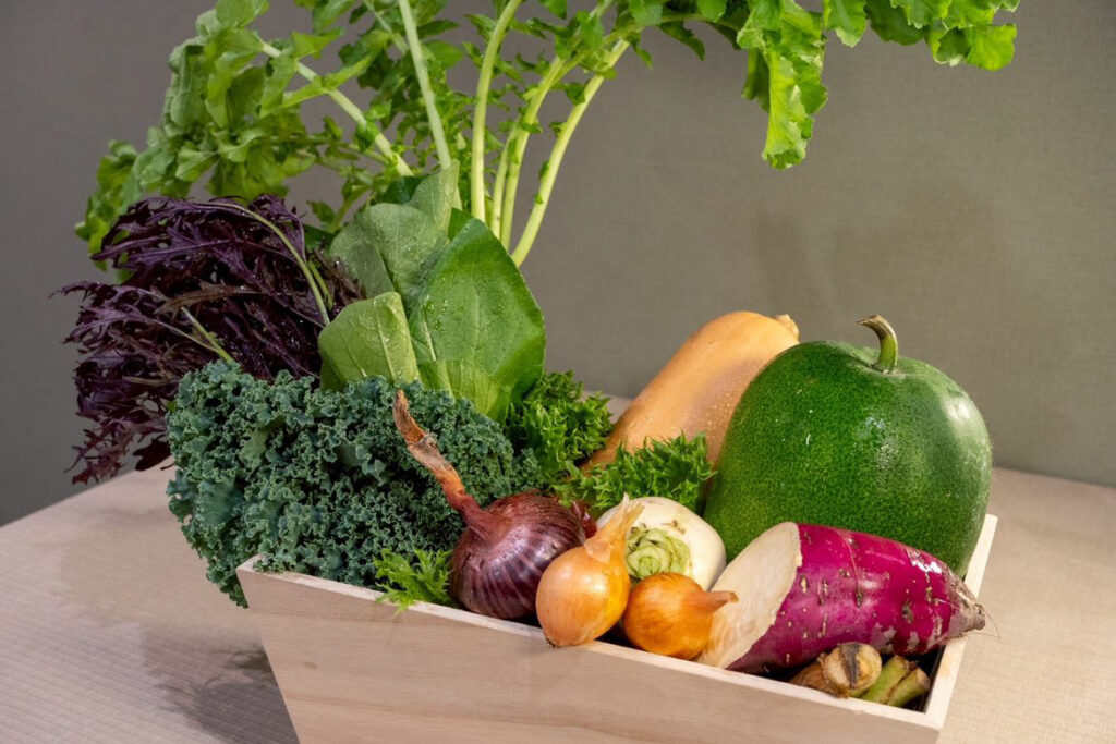赤ネギ、大根、もってのほか、里芋、カボチャ、ミニ白菜、ニンニク、さつまいも、ふじリンゴ(間に合えば)etc