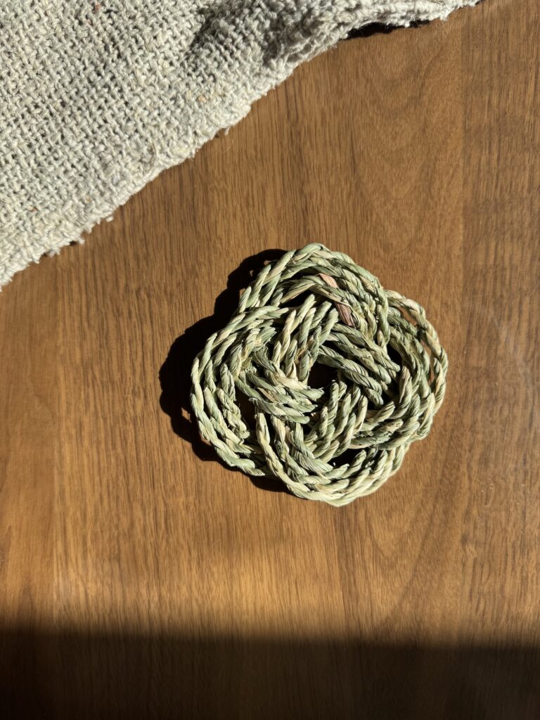 スゲという植物を綯い(ない)、手しごとの温かみあふれる編み込みコースターを作ります。